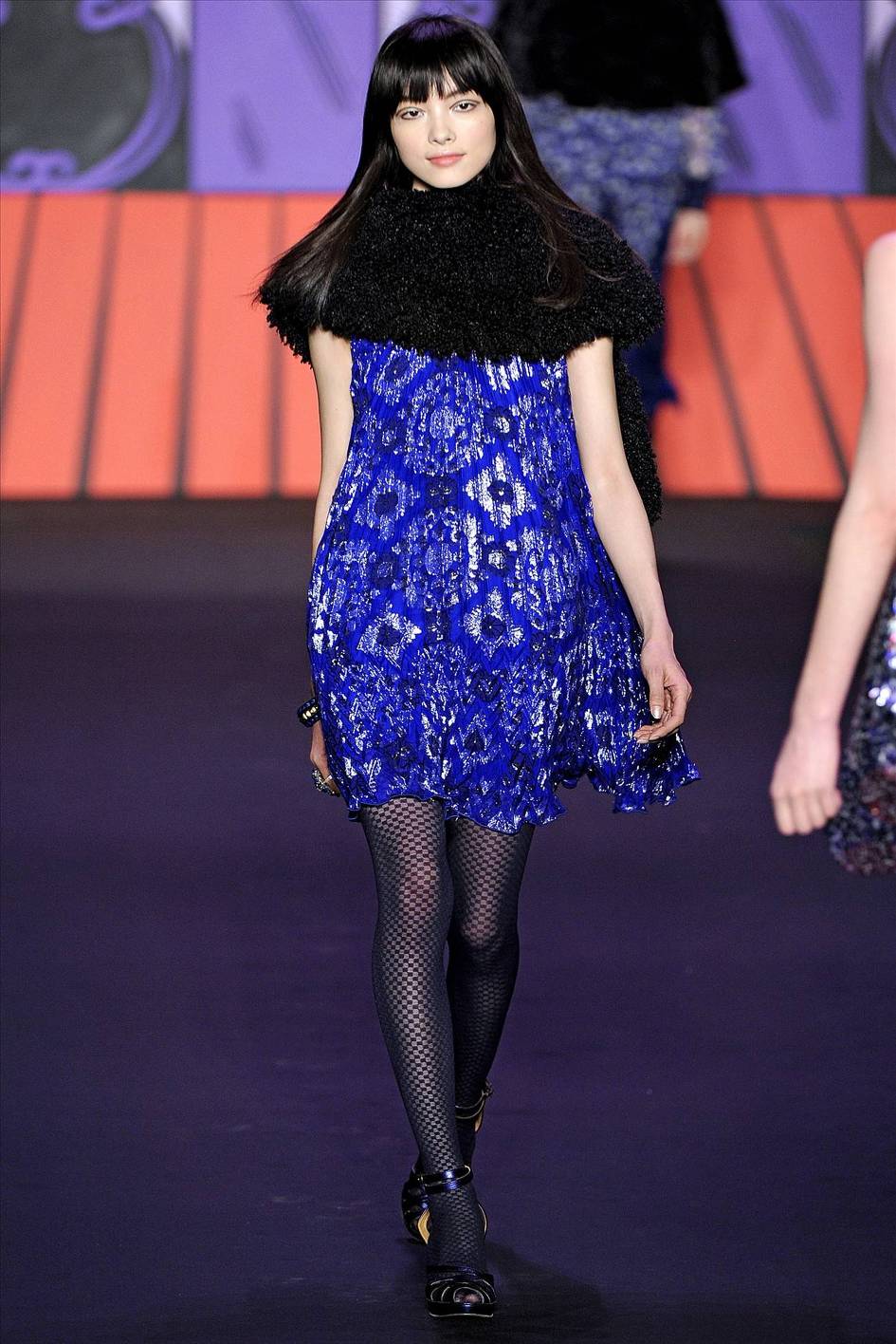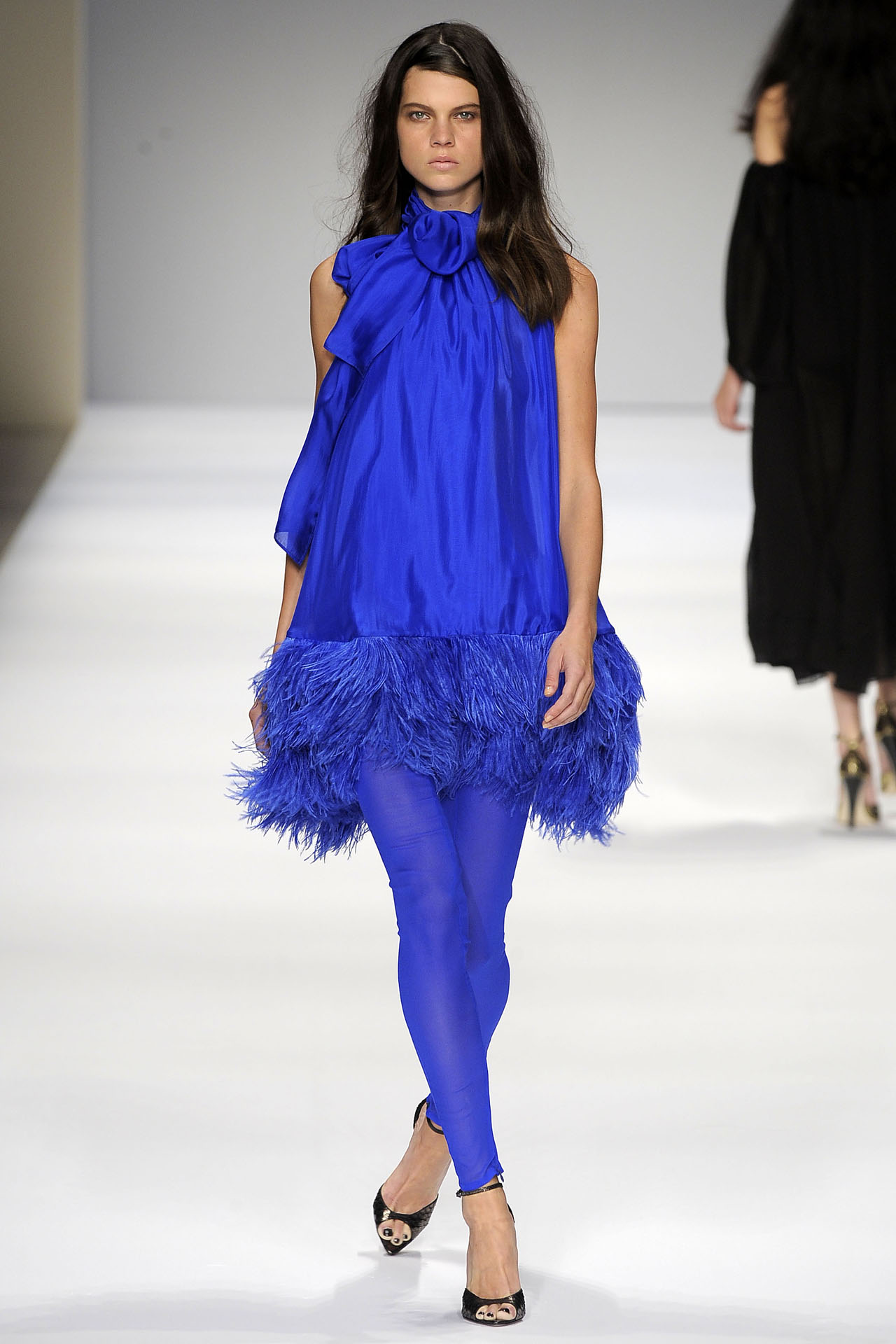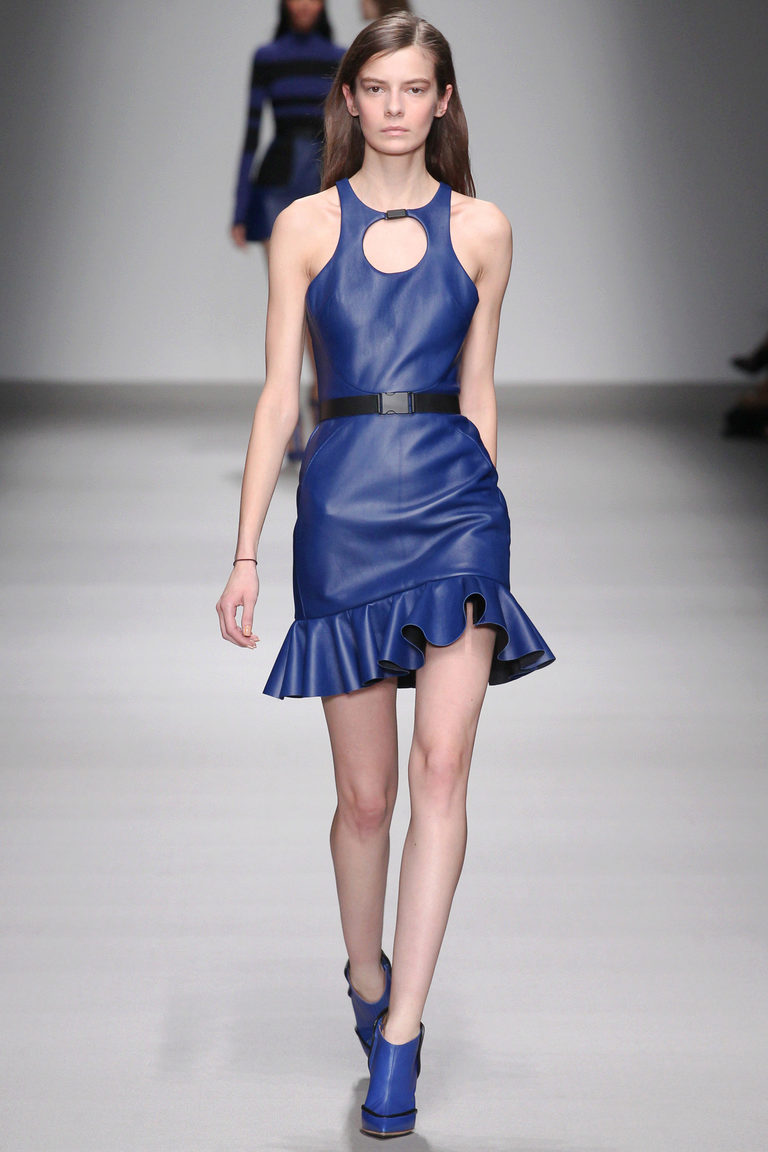 To avoid vulgarity when choosing a bright blue dress, try playing on style contrasts.Give up the example of classic shoes, shoes in favor of extravagant ankle boots in the style of rock, as well as complement the image of a leather jacket, leather jacket and a bag with a fringe.
