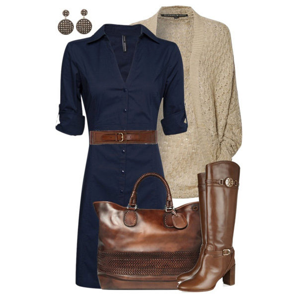 Brown boots or boots would be the perfect pair for a denim dress. And if you add leather jewelry and a handbag, correctly selected to match the shoes, to such an image, you will be irresistible.