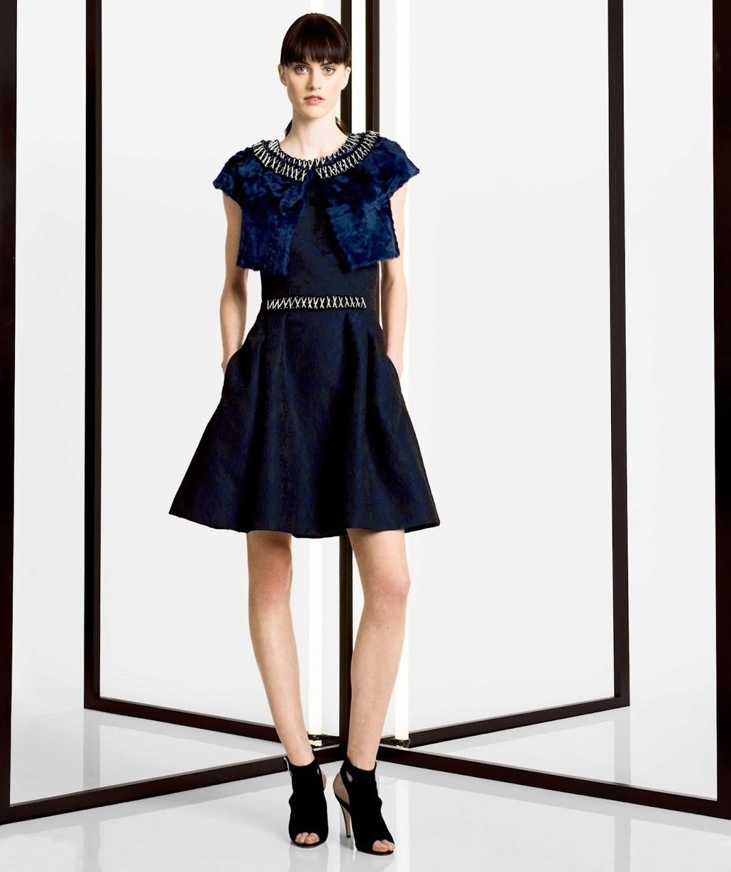 If the dress is not too long, the emphasis can be placed on contrasting shoes.