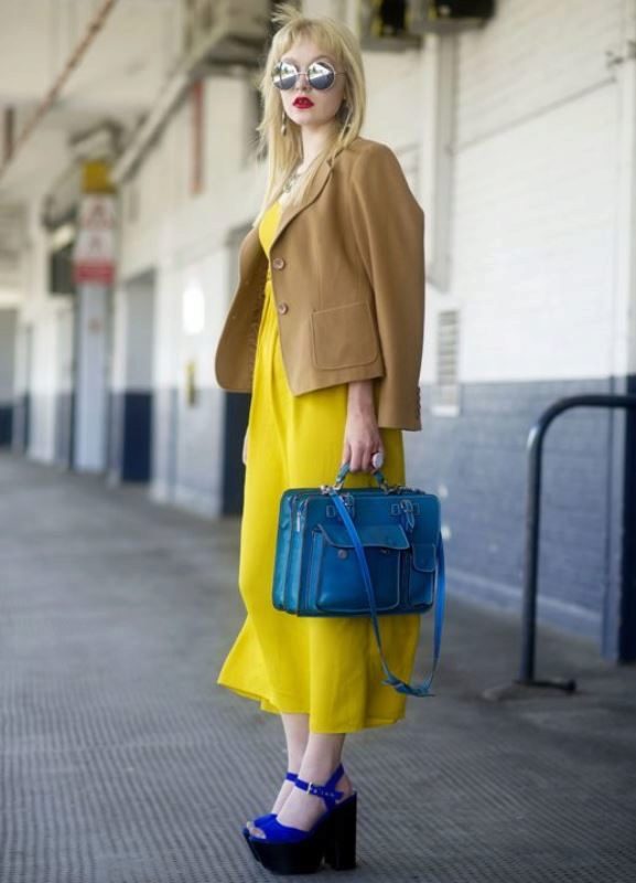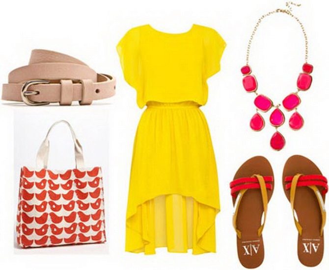 For a walk, for example, with a yellow dress, it is better to wear ballet flats, and from above put on a knitted cardigan, a denim jacket.
