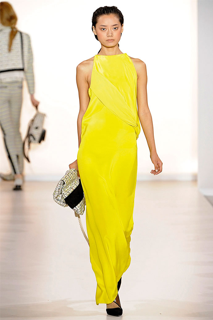 If we are talking about early spring / autumn, then it is quite appropriate to put on a fur vest from above on a yellow dress.