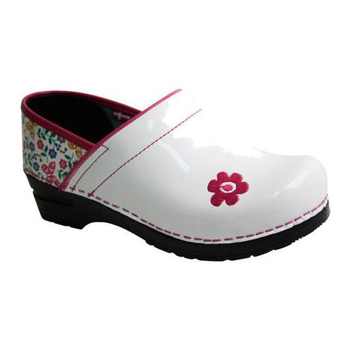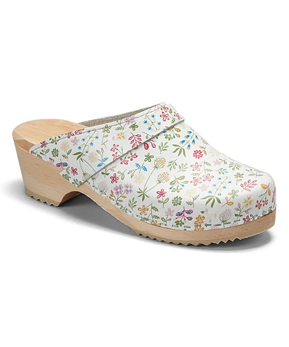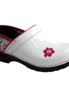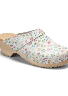 - Clogs decorated with decorative flowers. Flowers are made of leather or textile.