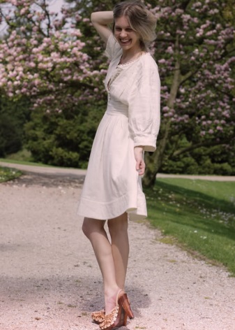 - You will be a real coquette if you wear a short flowing dress or a long sundress. Clogs should be decorated with rhinestones or even spikes. In the event that the dress is distinguished by bright patterns, it is recommended to choose monophonic shoes.