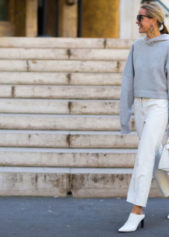 The combination of a sabot on a platform with a closed cape and jeans pipes will look winning. The appearance of this shoe surprisingly combines elegance with massiveness. Because of the second characteristic, you should not wear something voluminous: the onions will turn out to be coarse and tasteless.