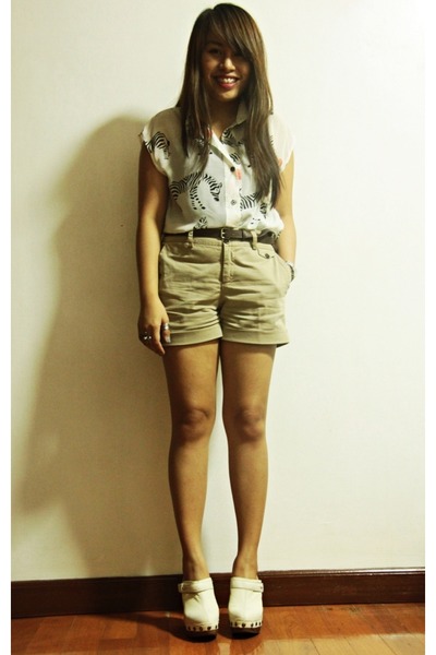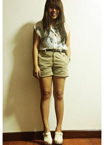 - You can create a slightly naive, but flirting look with the help of wedge clogs, bermuda shorts and white socks. Shorts can be made of denim.