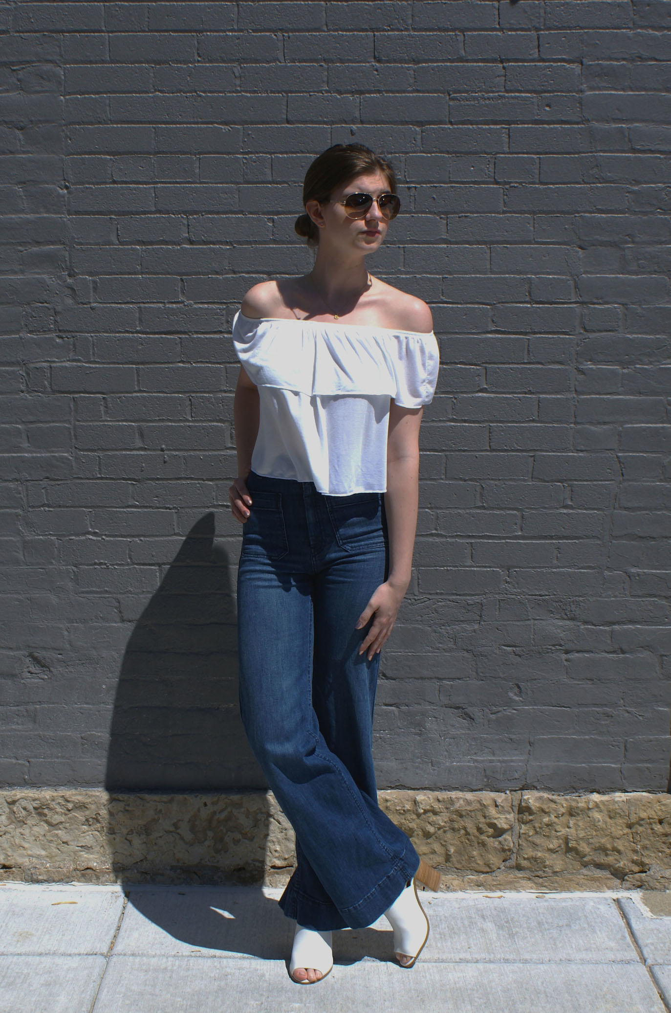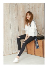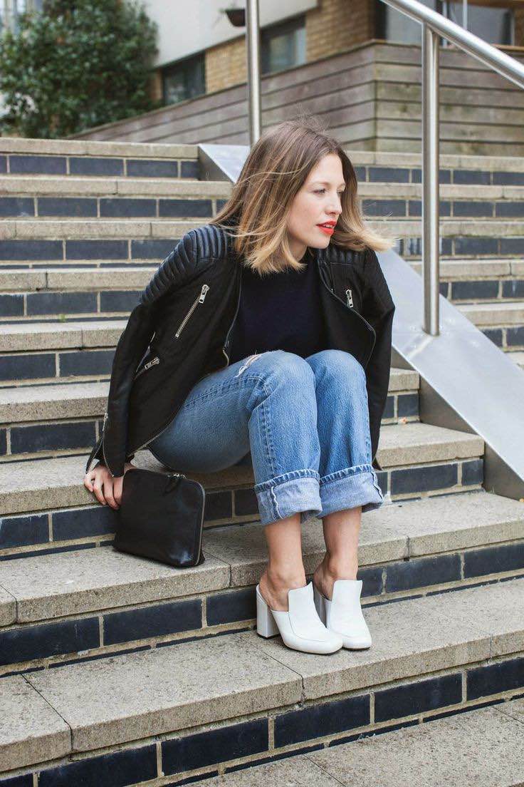 For white clogs with a closed toe you can pick up jeans-pipes, which will smooth out the massiveness of the shoe. Another good option is denim shorts. In this way, just do not have enough hats, top and glasses.