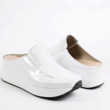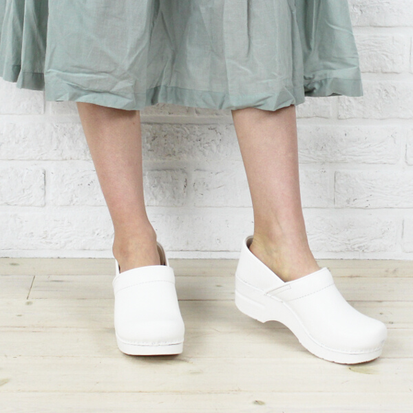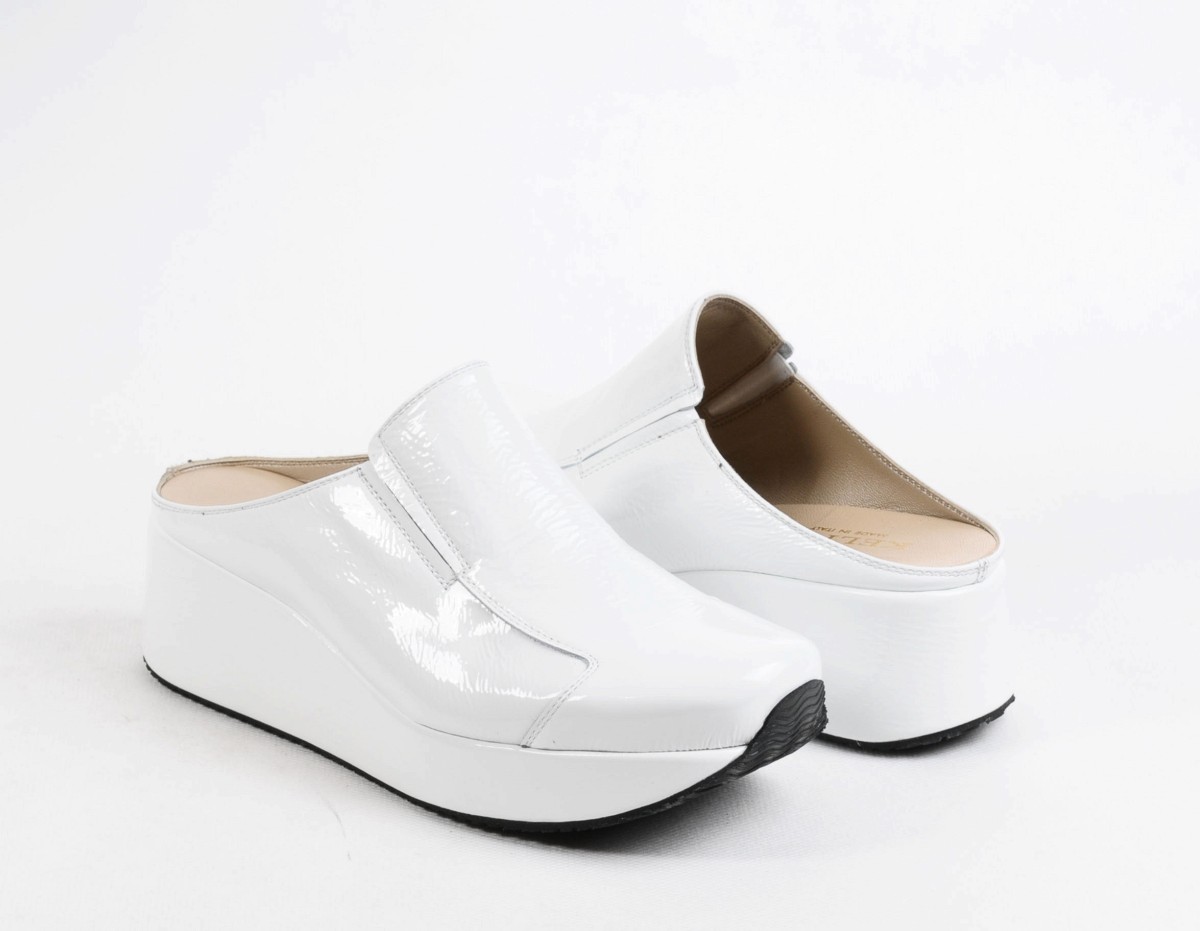 - Genuine leather is the most suitable material for creating white clogs. If we take into account the white color of the white color, then it is the leather models that are easy to clean and retain their appearance for a long time. White leather clogs look great with a heel, wedge, and even on a flat sole. Equally popular are completely white models and clogs, which combine white top and black sole.