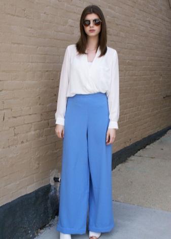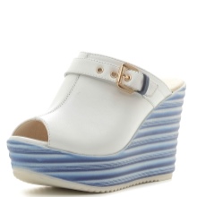 Although the white color in the sabot smooths out their massiveness, but the owners of thin legs will have to pick up wide trousers or long loose skirts for this shoe.