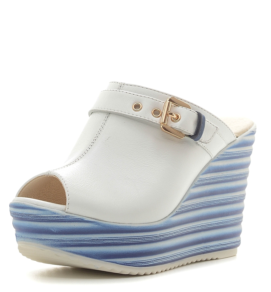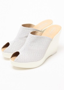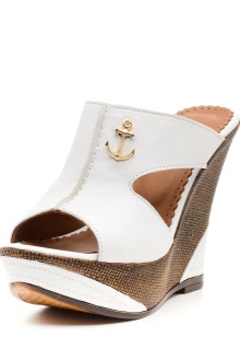 - Women's white wedges on wedges deserve special attention, because they are megapopular, reliable and comfortable. The wedge itself can be made of polyurethane, cork, wood or covered with leather. Any of these options is popular. This season on the podium appeared clogs that combine platform and lift.