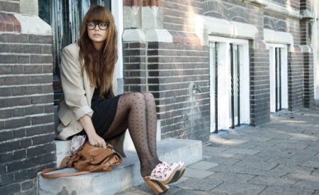 The bag, which will be in harmony with white clogs, should be voluminous, far from the classics. Since we are considering summer shoes, then it is necessary to pick up her sunglasses. Ideal - glasses with white rim.
