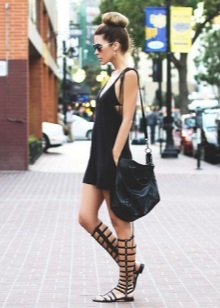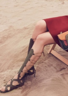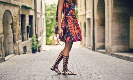 This is one of the types of classic sandals in the Roman style - knee-length and flat straps.This shoe is especially suitable for girls who prefer an active and somewhat brutal style in clothes. She makes the image of a woman belligerent.