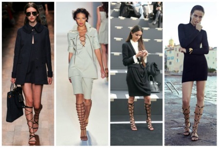 Gladiators are shoes that are not suitable for all girls. It is better for owners of full legs to refuse such footwear, as it will look unprofitable on them and will only emphasize shortcomings. An exception may be low-rise styles. And with high models it is better not to experiment.