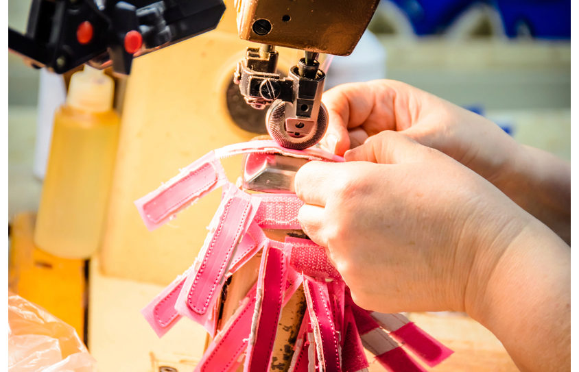 For the upper part of the shoes I use mainly natural and artificial leather, textiles, rubber and high-tech synthetic materials, as an example used in the manufacture of the membrane line of shoes.