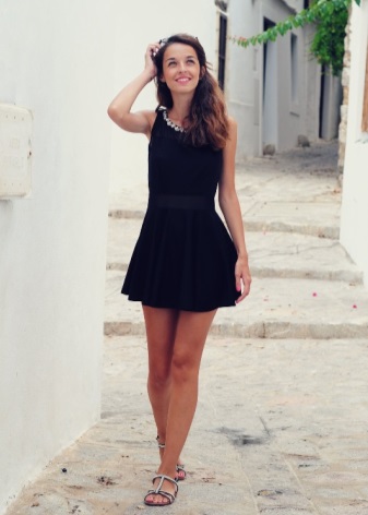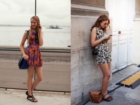 The dress is the perfect feminine outfit that looks great with sandals of any style. With sandals on a flat sole, the dress to the floor and a short sundress with open shoulders look equally well. They can pick up the tone or give preference to a contrasting combination. Complement the image of a wide-brimmed straw hat and sunglasses.