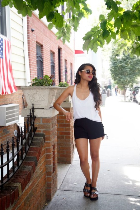 If you go to a party, give preference to black shorts, which can be complemented by a loose blouse. Add silver sandals to your look and a flawless look is ready!