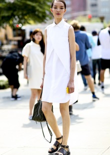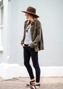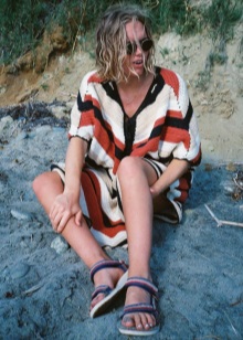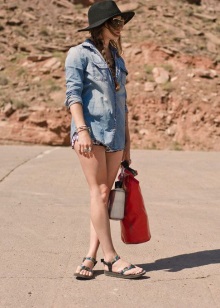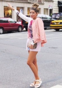 Most often fashionable women combine summer sandals with sporty clothes. The most common option is short knit shorts and a loose T-shirt with interesting prints. T-shirt can be replaced by a saturated color top, a spacious T-shirt and a jacket.
