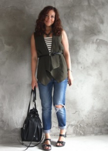 The best option - the top and sandals, decorated in the same color. Pick up accessories to make the image look complete. Ideal sports bags and backpacks, as well as scarves and belts.