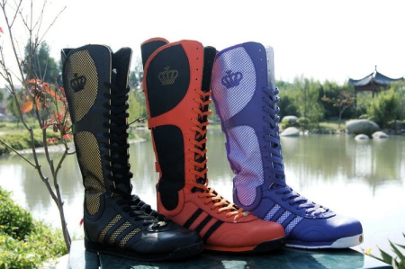 For lovers of bright colors in clothes and shoes, designers Adidas created female models of boots in bright colors - blue, yellow, red, green, purple. For colored boots, it is important to choose accessories of the same color. For example, red boots will look harmonious with the same shade of a red scarf.
