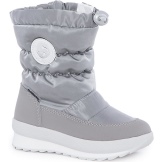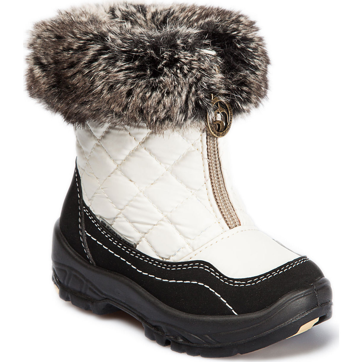 White Alaska boots for girls, made in 2 versions. The low-top model has a gray fur trim on top, a lock is built into the middle. Bottom combined with the addition of black textiles. The second version of the average height and Velcro.