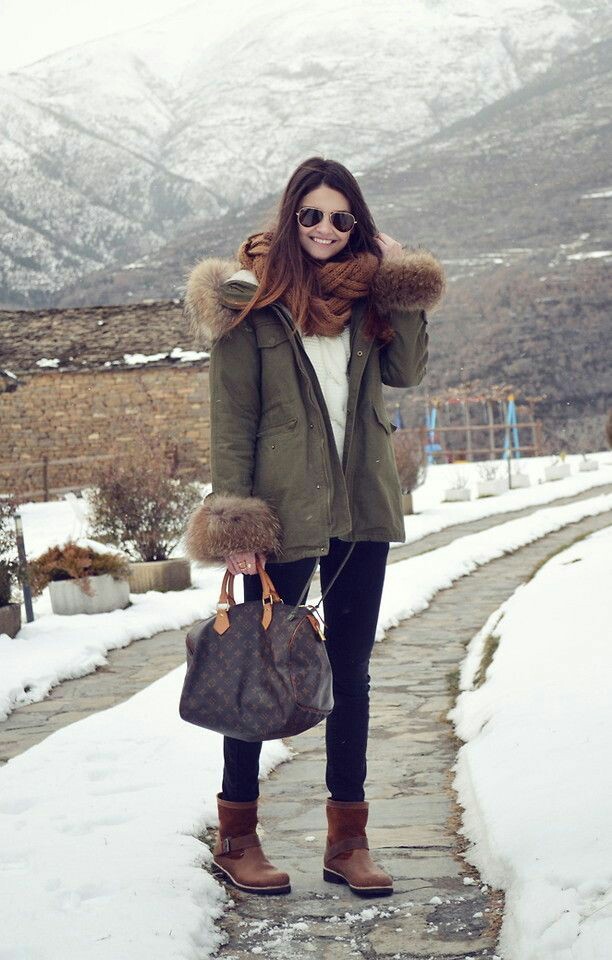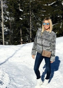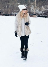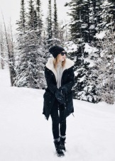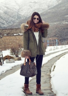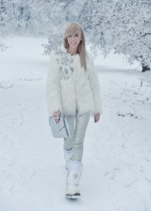 Women's short and long jackets in combination with leggings and skinny pants - the best solution for every day. Winter overalls and boots Alaska - what you need to practice in the fresh air. Down-padded coats are not lower than the middle of the thigh, with fur trimmed on the hood, look gorgeous with dutikami of different heights. The fur coat with the Italian half boots of this trade brand will also look impressive.