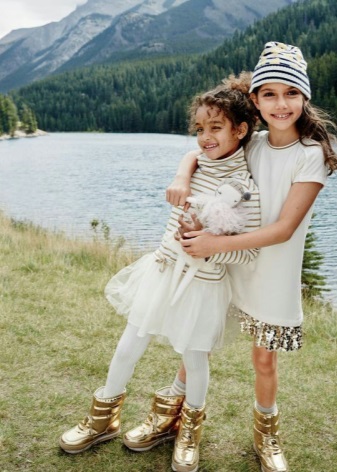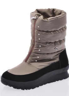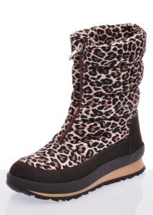 Product design is diverse. In the classic versions, the upper is made of textiles, in the middle there is a lock and a sole with a deep protector. Models resembling moon rovers look voluminous and dense, with stylish lacing. Another view is a kind of winter boots: the tops are usually low, fastened with velcro.