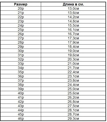 Female models are presented in the standard grid from 36 to 41. Shoes for men are sewn on 46 size.