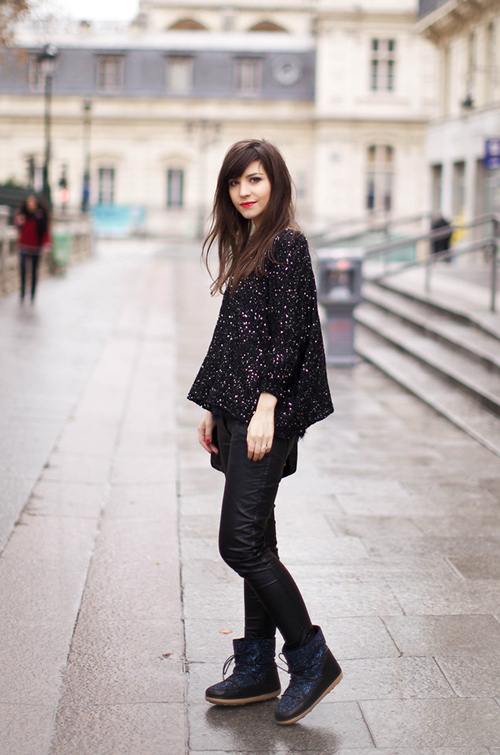 - Women's quilts are designed in several formats, which are united by a textile top, decorated with inserts made of genuine leather or suede, the use of felt insulation, and the sole with anti-ice function.