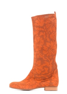 - Demi-season news for bright images in demand in brown and orange tones. They are decorated with a texture with a print and a bright sole with a heel. These boots perfectly complement the bow in the offseason and dry weather.