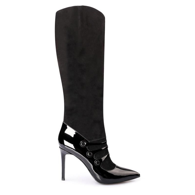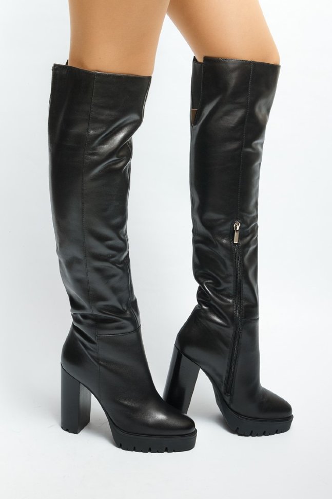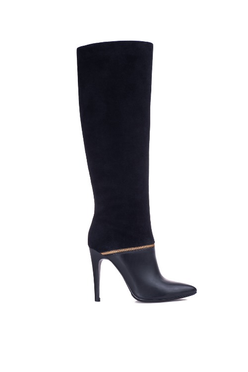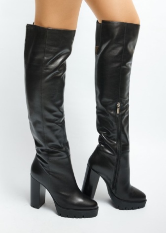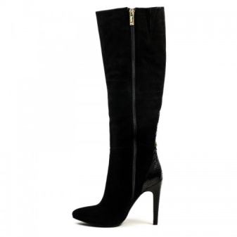 - The height of the stud may be small or as high as 14 cm. The boots are fastened on the side with a zipper to match the top and sometimes have elastic inserts on the top of the shaft to ensure the most tight fit of the leg.