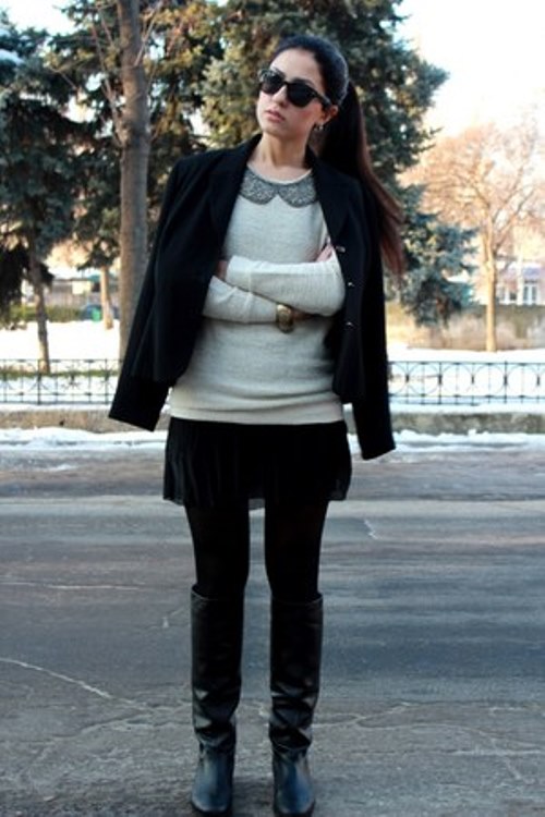 - Stylish new items are made mostly in dark colors, sometimes in the rulers there are white and beige models. The most in demand boots in black, brown and gray shades. The texture of the models is matte, lacquer, embossed and printed.