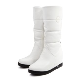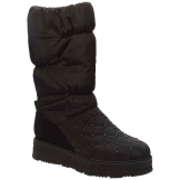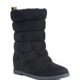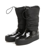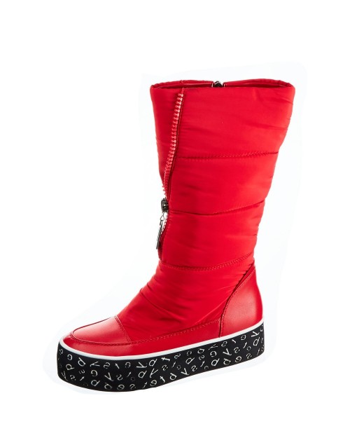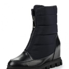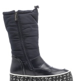 Rows of snowboots made from water-repellent textile may have a contrasting flat sole with a print of generously scattered letters. Such a design dilutes the banal dark background of the top of the boots. For greater durability, couturiers combine the texture of materials using leather inserts to strengthen the heel and sock.