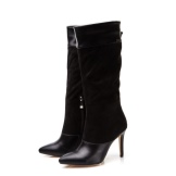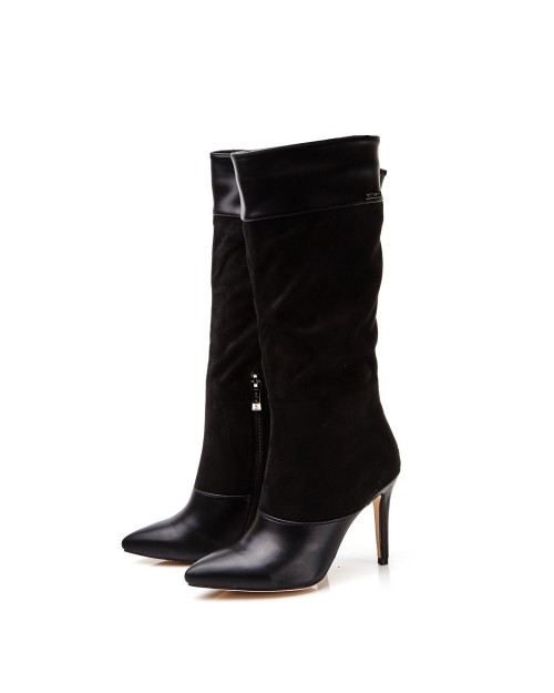 Women's winter boots season pleased with a variety of styles. Some classic models with a thin hairpin have a free toe of medium height. They are made in the style of minimalism, differ in a smaller relief of the sole. Often, designers decorate their boots with a combination of materials, metal logos or a contrasting elastic drawstring at the back along the shaft. The thickness of the stud is close to a steady heel.