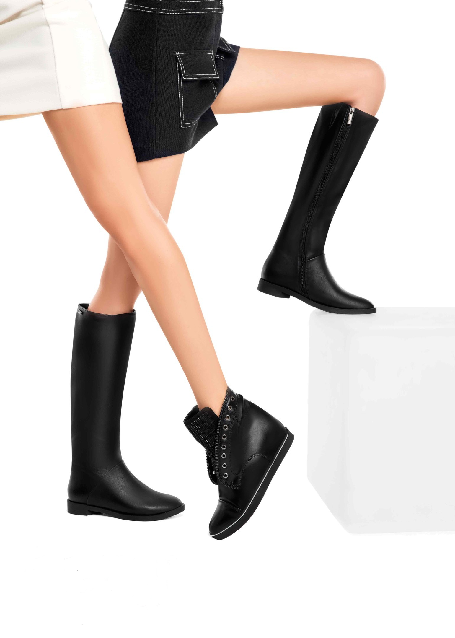 Especially popular with fashionistas are boots above the knee, tight-fitting leg. The height of the heel and the shape of the sole is varied. The top can be assembled "in accordion", quilted or without decor.