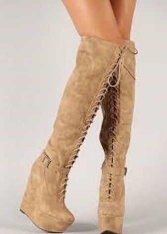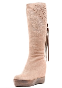 Beige boots can be worn with warm clothes. They are harmoniously combined with outerwear. They can be worn with a coat of pastel shades. Great with beige shoes looks fur vest, sheepskin coat or fur coat.