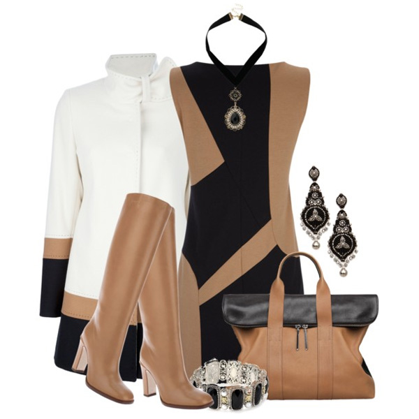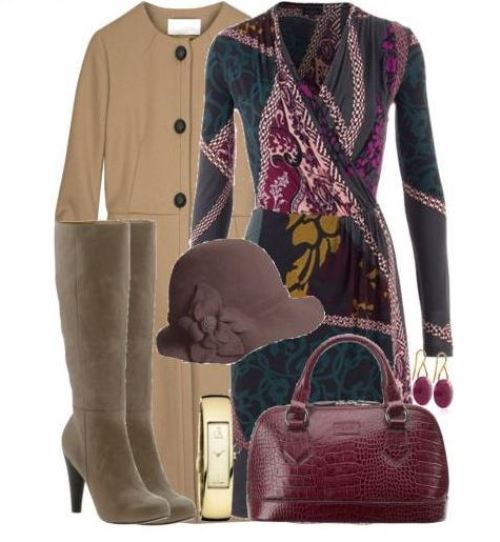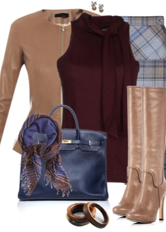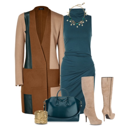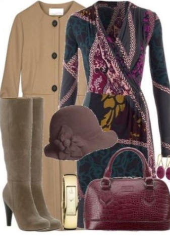Things of coffee, chocolate, brown or pale pink in tandem with a beige color become soft and warm. You can play shades of beige. For example, with boots of a dark shade to put on accessories of light tones.