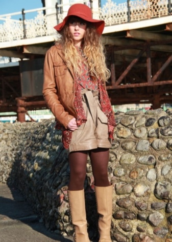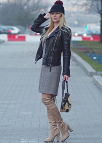Beige boots are not recommended to be combined with black tights. Such a tandem will shorten the silhouette, divided the legs into two parts.