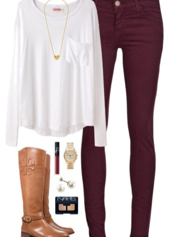 Each woman of fashion has several pairs of stylish jeans in her wardrobe. They look perfect in an ensemble with beige boots, but you should be careful with a choice of colors.