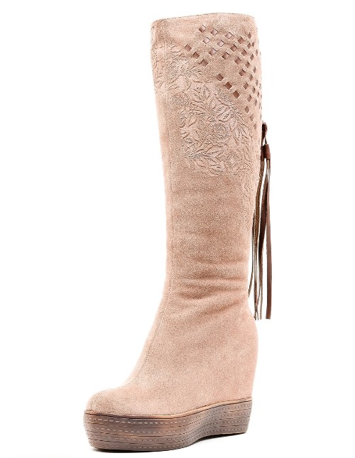 Beige boots are perfect for creating compelling, stylish bows in an office or casual style. They look great in tandem with skirts, dresses, pants or jeans. Women's beige boots can help create gorgeous bows, as well as visually lengthen the silhouette, add elegance and harmony to the image.