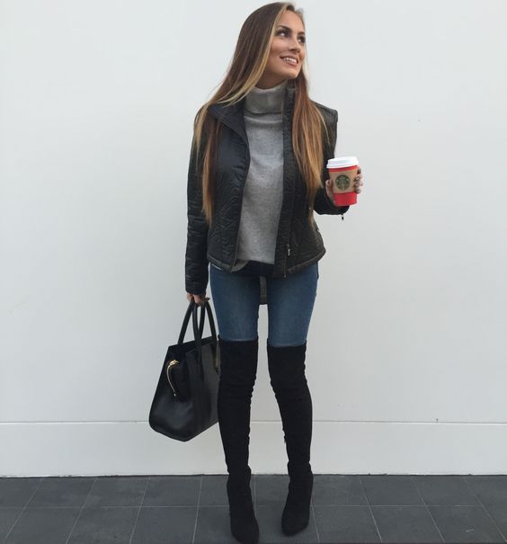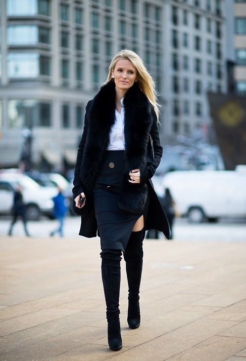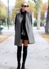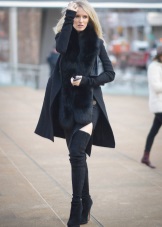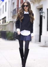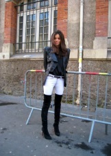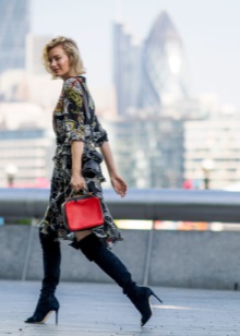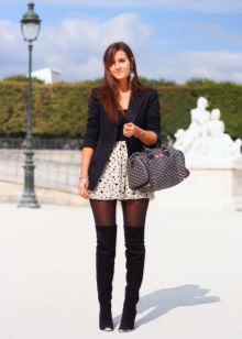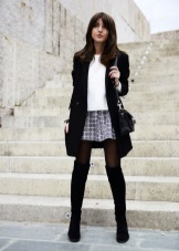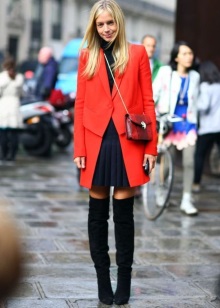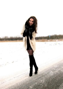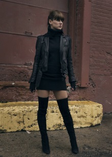 These high boots are in harmony with skirts, mini, widening at the bottom, with dresses. Look great with black skirt boots with a small flirty cut.