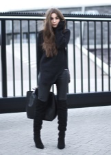 Black suede boots, covering the leg almost completely, are not vulgar. Never. No way. And this is their main difference from similar leather shoes. Typically, manufacturers of suede boots are decorated with large buckles, small chains. But even without such decorations, they look gorgeous.
