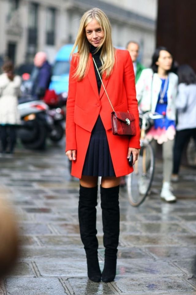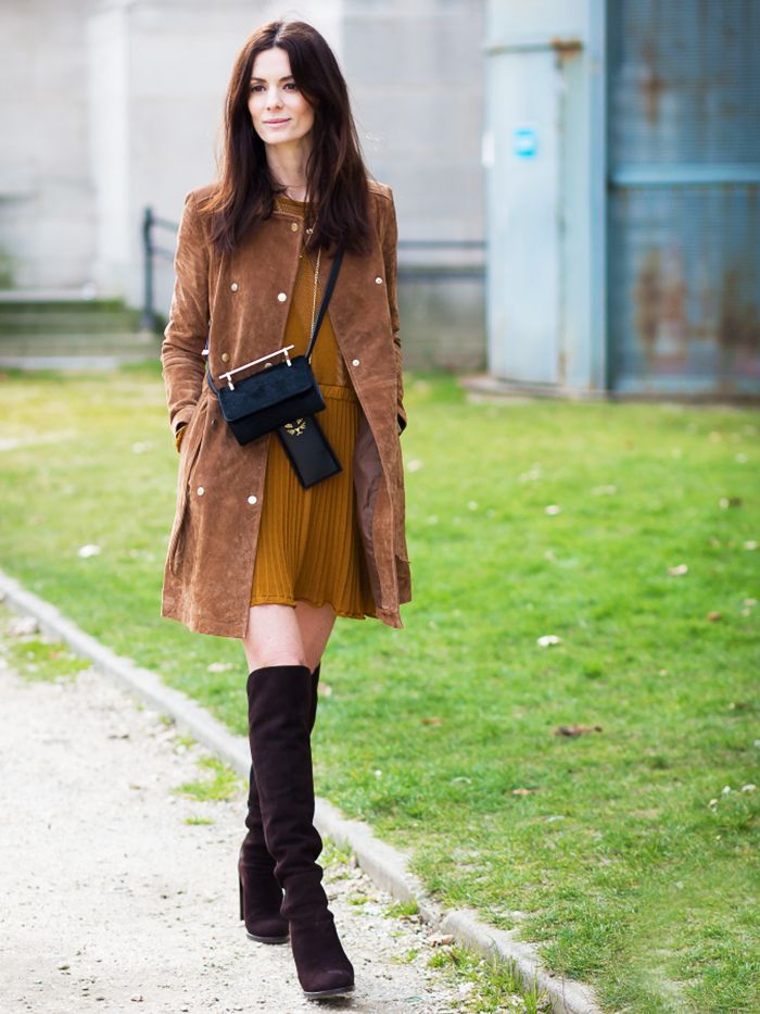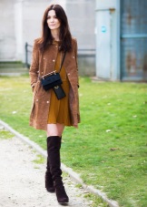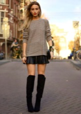 If your suede boots do not have a heel, you need to pay attention to the length of the skirt - from the bottom edge of the hem to the beginning of the boot should be more than 10 centimeters. Otherwise, you risk to visually give the impression of a short-legged person with a low waist.