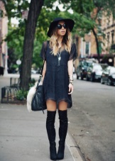 This type of footwear perfectly matches both jeans and dresses. Shines with coats, jackets and coats. The main rule - boots made of suede should not be closed. Consider the basic styles in which black suede boots are appropriate.