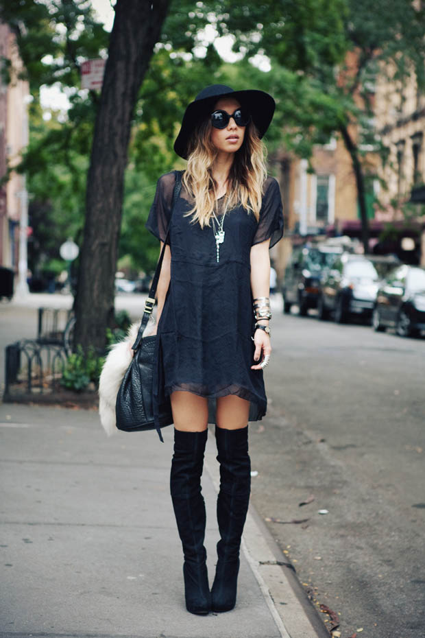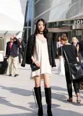 If you want to wear a little black dress - please, but be careful here. Combined with black suede boots, you can create a heavy “mourning” image, far from romance. Jewelry, beads, a belt with a beautiful buckle, a silk scarf will help to avoid this. And the brighter it is, the better. Straight black dress does not need to be worn with boots without heels. And careful with tanket and platforms.