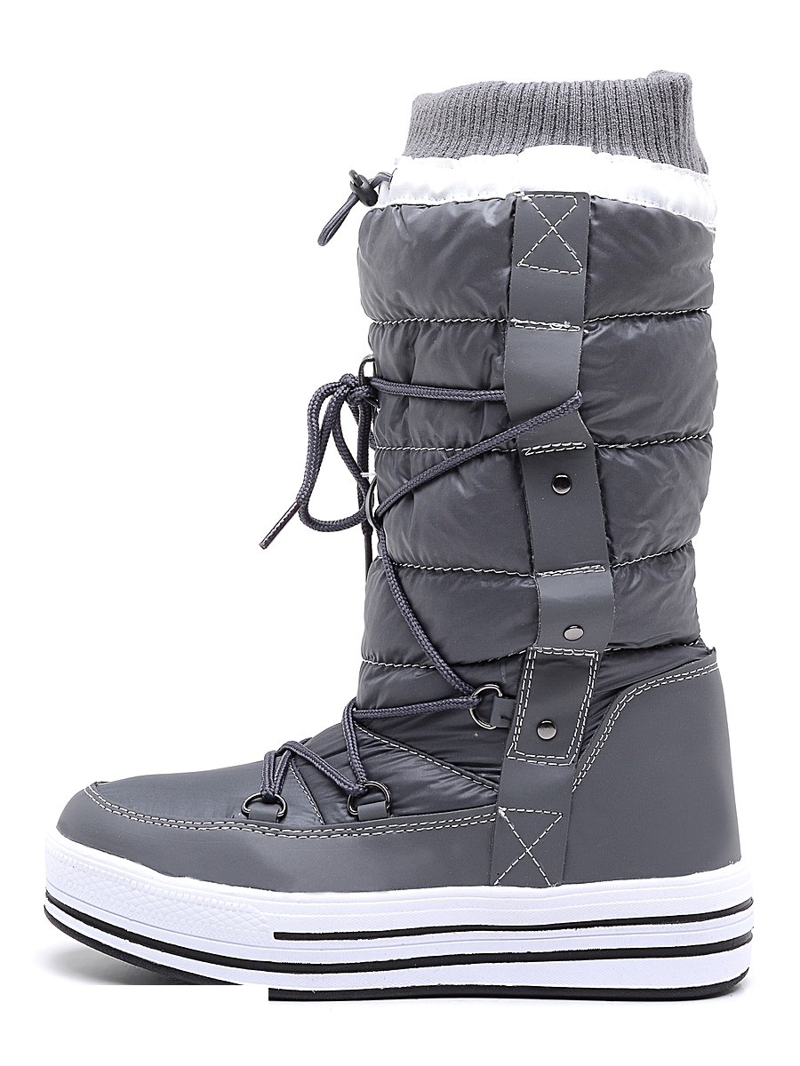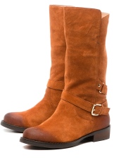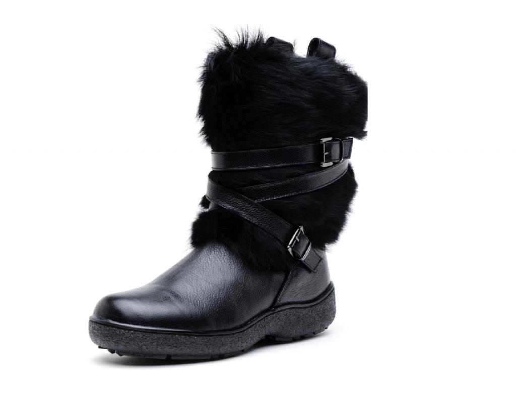 Women's boots are often performed in dark shades of genuine leather. The style has a thick platform with a deep tread and an average shaft height. In addition to warming the inside, the model is decorated with short fur and belts around the tops. The fur can be in tone with the product or contrasted with it. The strengthened back reliably fixes foot in the correct position, excepting its deformation and sliding.