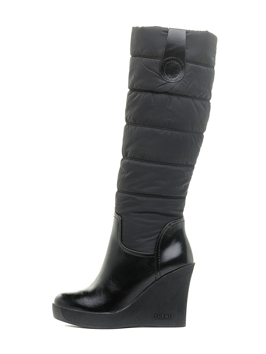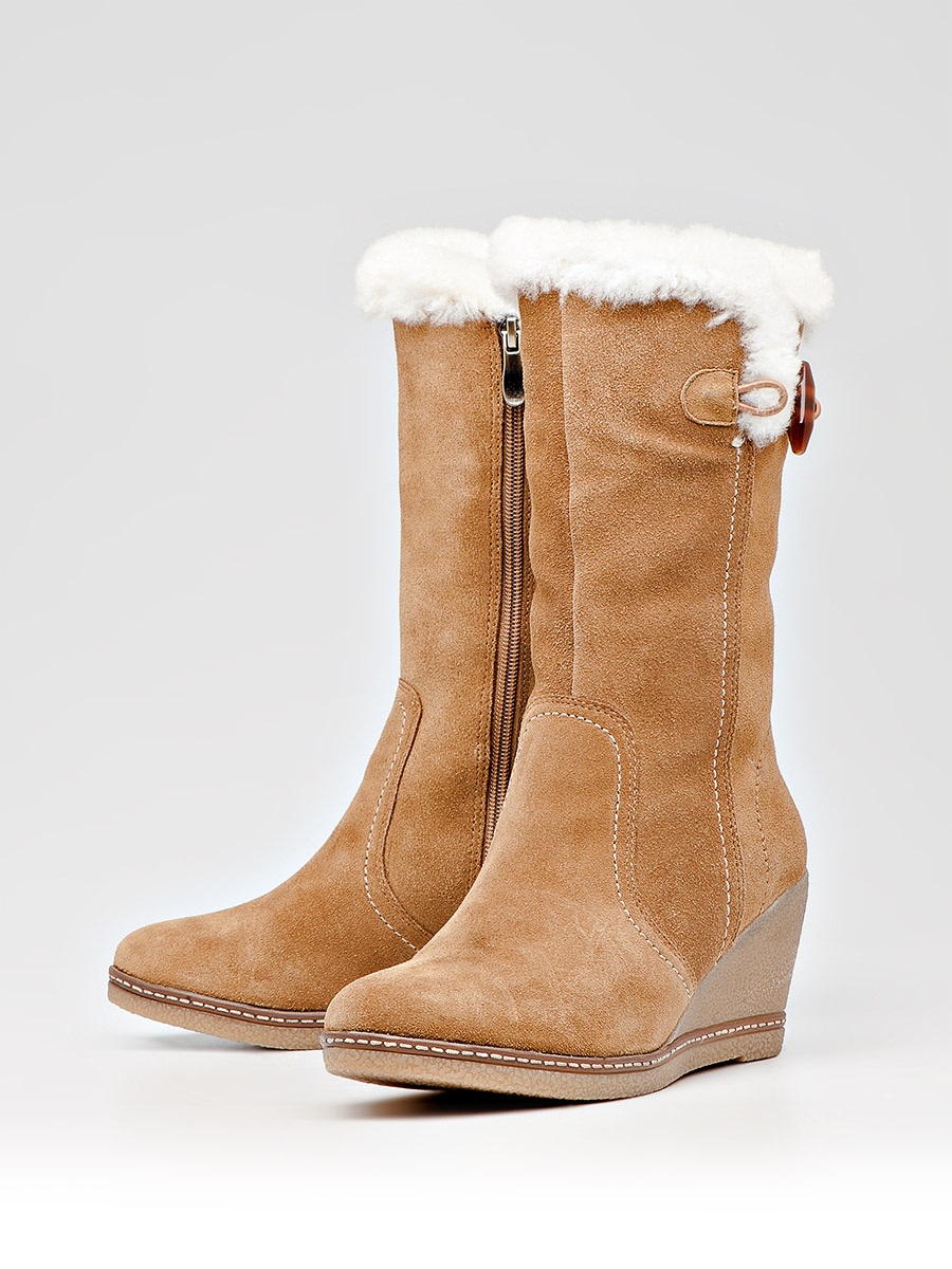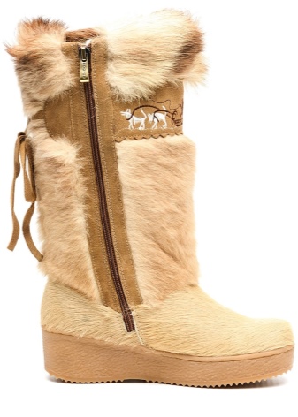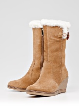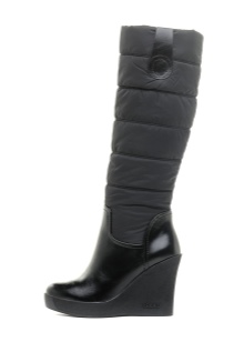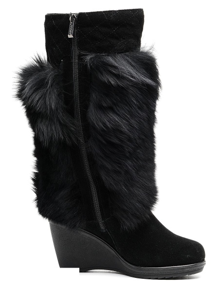 Models on the wedge are decorated on the shaft with long pile fur. They are made of their velvety suede. As a final touch, fashion designers decorate such boots with a bow with metal rhinestones.