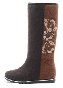 Short boots are often decorated on the upper edge of an embroidered pattern and rhinestones. Beautiful pairs of shoes with a wide heel height of 4-6 cm are very comfortable and resistant.