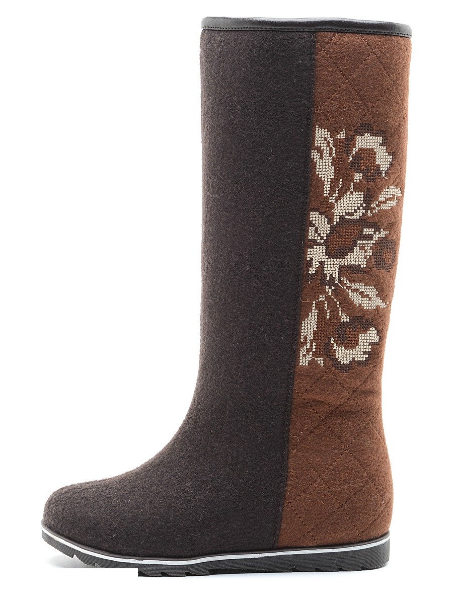 Felt boots brand are simple shape and the average thickness of the sole. They are made in the style of minimalism and can be decorated with a small fur trim on top of the tops or decorative buckle.