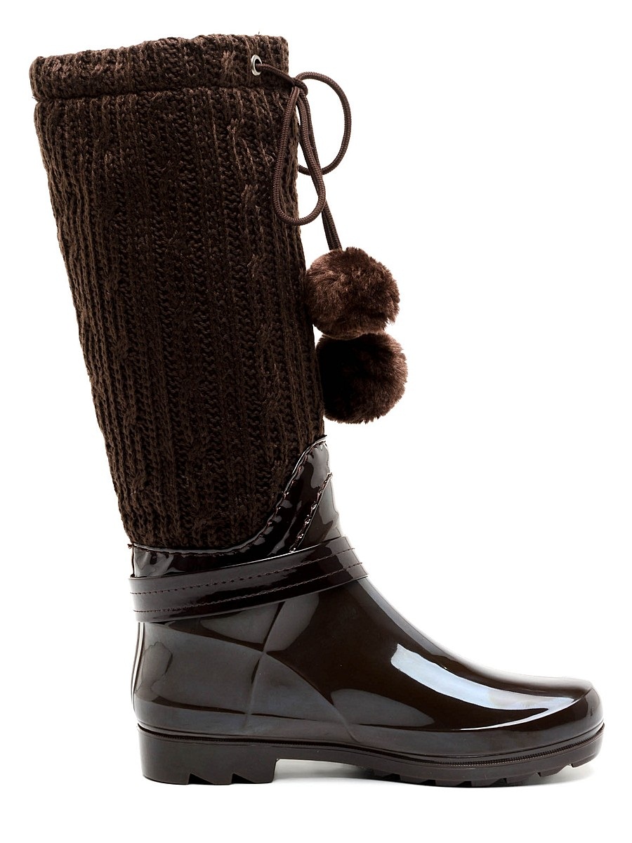 Women's collections of boots of a brand differ in the original invoice and design. Rubber and felt options are not inferior in grace to boots made of leather and suede. Designers of the company decorate them with various decorations: fringe, ribbons, bows, laces, metal fittings, stones and decorative appliqués.
