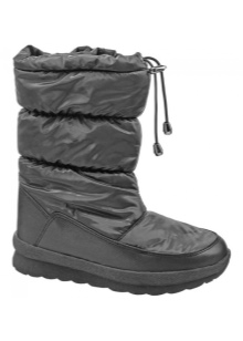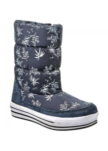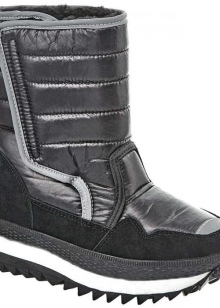 Classic inflatable boots brand often have a zipper on the front. They are stitched along the tops of several lines and almost devoid of decor. Occasionally, the company's designers adorn models on the sides with a round or rectangular rubber patch with the brand name. Some dutiki do not have a fastener and are fixed with an elastic cord in the upper part of the shaft. It prevents the ingress of cold air inside.