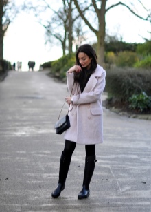 - The combination of shoes with black leggings or tight tights looks spectacular. But such a set should be abandoned to owners of a full figure;
